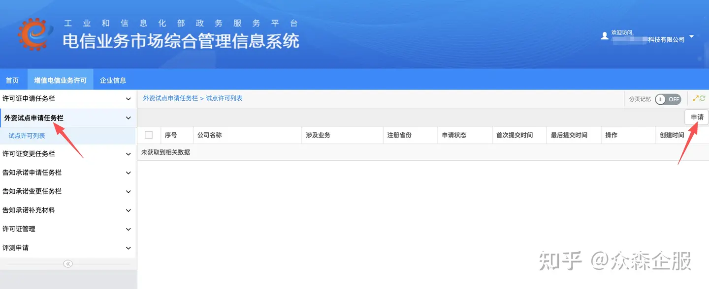 Step2:如果外资超过50%,在试点地区可以直接通过外资试点申请任务栏进行申请